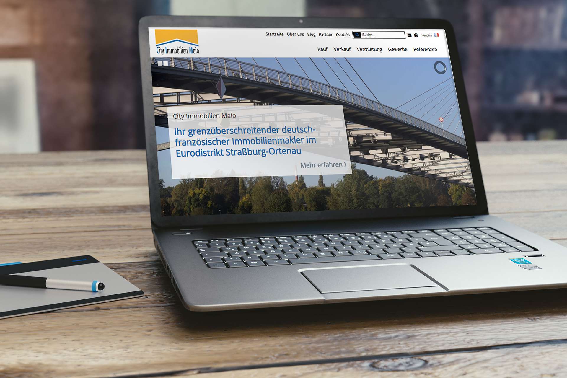 Depuis 2004, ce partenaire de l'Eurodistrict Strasbourg-Ortenau pour votre projet immobilier n'a cessé de se développer et est actuellement un acteur majeur dans son domaine d’activité.Afin de rafraîchir la communication de City Immobilier Maio, l’Agence Net Catalyst a travaillé sur la conception d’un nouveau site multilingue (français-allemand) ainsi que sur son responsive design, c’est-à-dire l'adaptation à la lecture sur mobile et tablette.